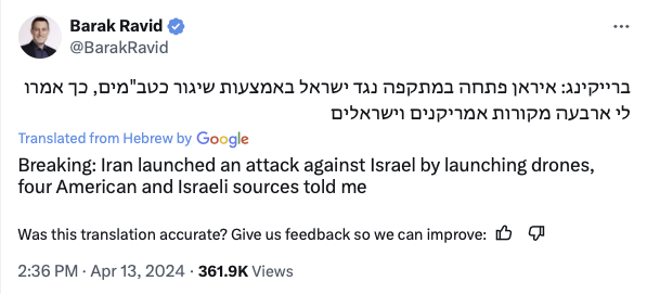 Iran’s recent aggression against Israel has escalated tensions in the region, with reports indicating a drone attack launched by the Iranian regime. Axios reporter Barak Ravid broke the news, citing information from four U.S. and Israeli officials.