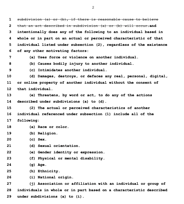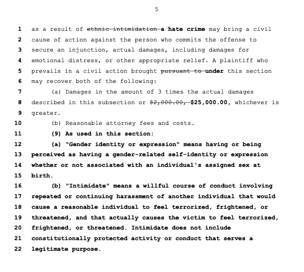 Under the new bill, causing someone to feel threatened through words could land offenders in prison for up to 5 years or slap them with a hefty fine of up to $10,000. The bill defines “intimidate” as a deliberate and ongoing course of conduct that causes a reasonable individual to feel terrorized, frightened, or threatened.