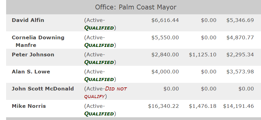 County records show that Johnson is currently an active candidate for Mayor of Palm Coast and has raised just shy of $3,000 in funding.