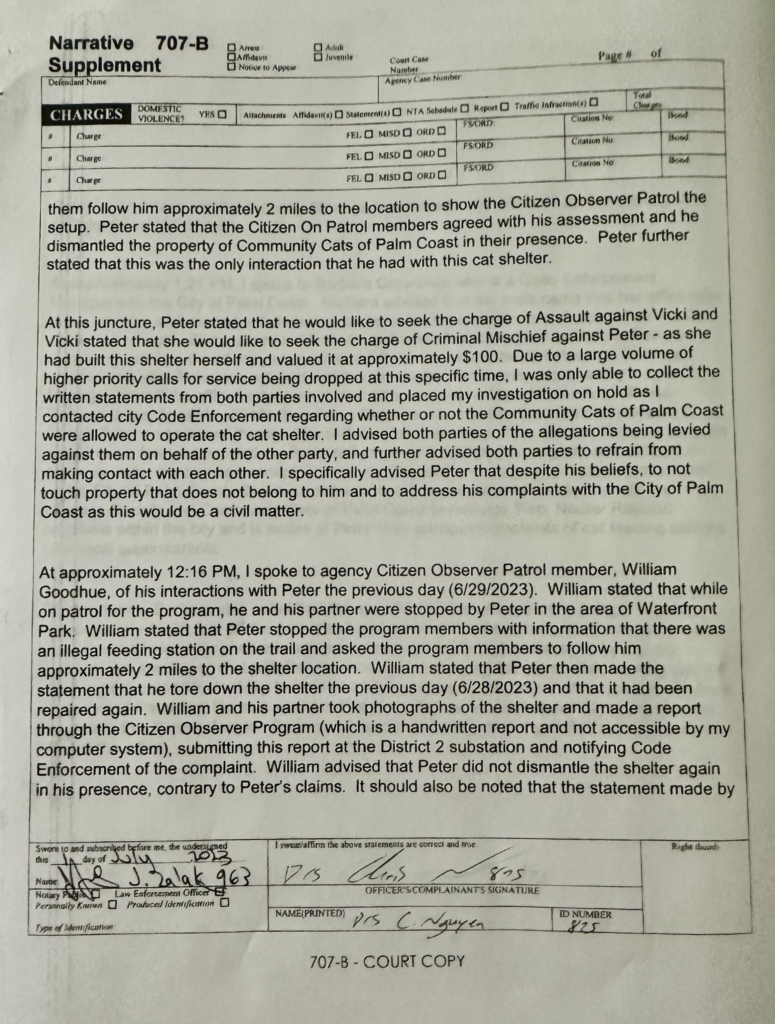 Johnson allegedly dismantled a cat feeding station that he believed to be in violation of a Florida statute. He then allegedly harassed and followed a female member of Community Cats who confronted him.
