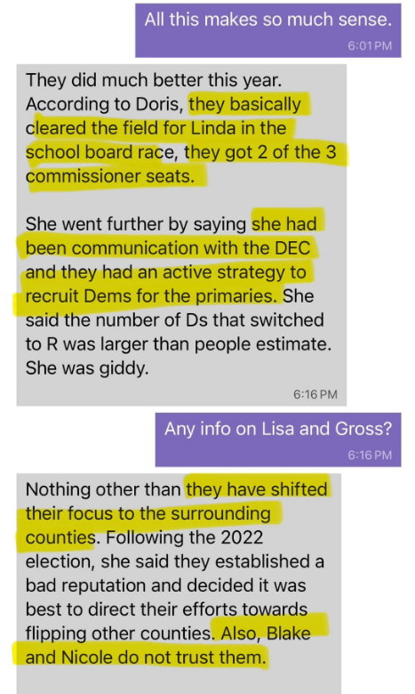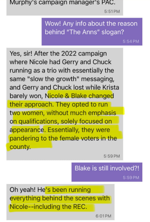 Those screen shots were obtained by a local source and point back to a directed effort to influence the local election. The Blake in question is Blake Paterson, who was removed by the Republican Party of Florida as the local GOP chair.