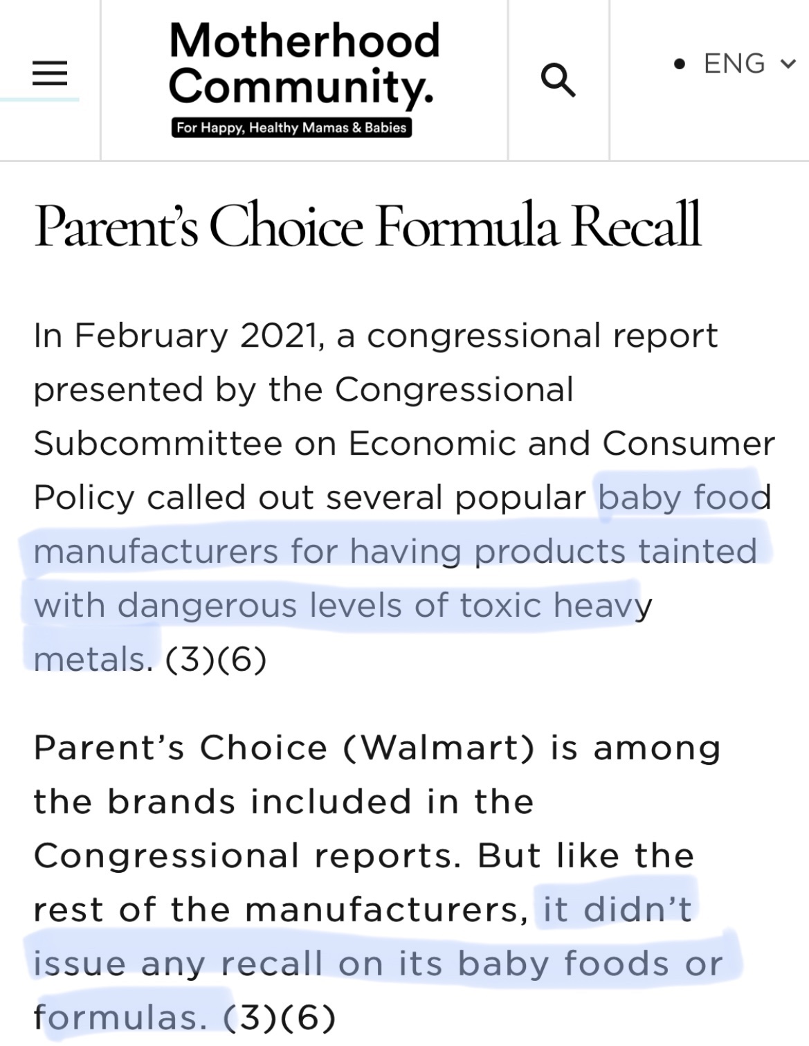 This comes during a year that a congressional report forced a recall for baby formula for containing toxic heavy metals in a brand sold at Walmart…because the manufacturers weren’t going to willingly do it themselves.