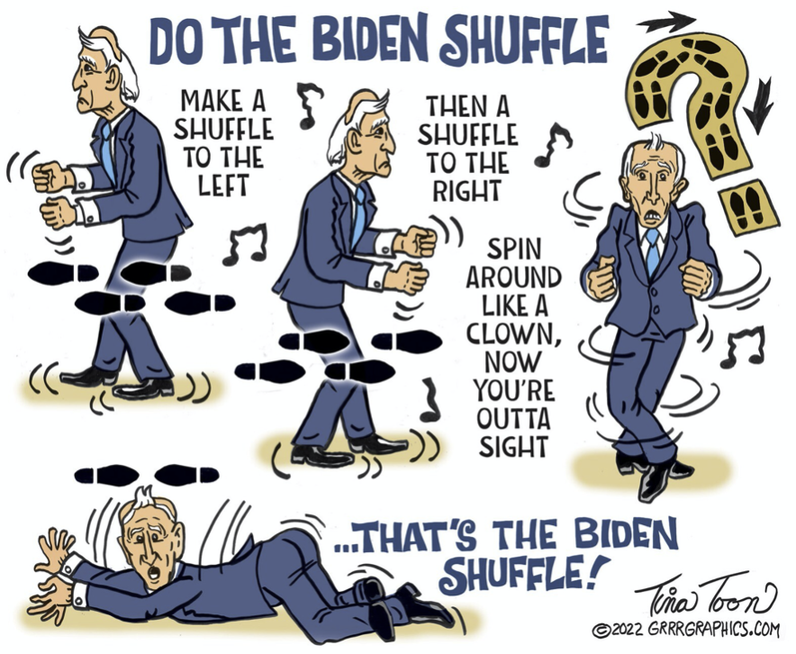 “Do the Biden Shuffle,” pretty much sums up the pretender in chief very well, doesn’t it?