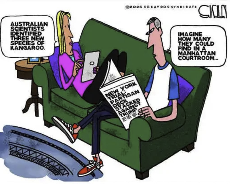 His newspaper headline: “New York Trial; Partisan deck stacked against Trump.”