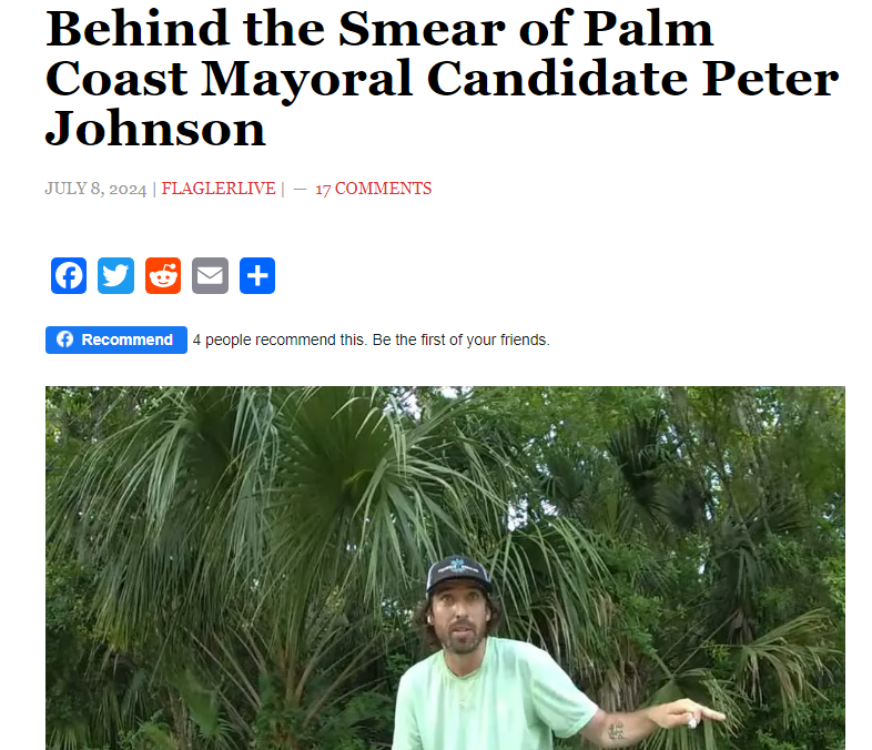 Peter Johnson has done little to answer the questions and concerns of Flagler County voters, however it could also be argued that his associations have given those voters even more questions. Flagler County has historically been Trump Country, with Trump taking 59.9% of the 2020 general election vote and 58.3% of the 2016 general election vote. The voters in Johnson upcoming mayoral election will ultimately have to decide if they want to elect a mayor who has more questions than answers about their political alignment, support for the party’s nominee and ability to manage their personal emotions and represent them with class.