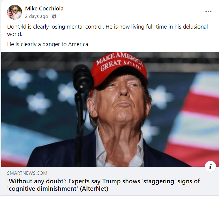 As evidenced by his social media posts, Cocchiola is also a rabid Never Trumper.