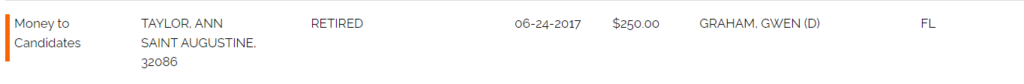 Faux Republican and current county commission candidate Ann Taylor has presented herself as a “slow growth” Republican candidate to Saint Johns County Florida. A quick glance at previous campaign contributions matching her name and location paints an entirely different picture. These donations start in 2008 and continue into 2022, showing that Ann may not be a walk away Democrat, but rather a leftist in disguise with an (R) next to her name. The donations are listed below along with a brief explanation of the candidate.