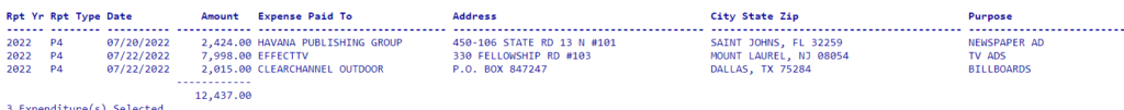 Below are some of their largest expenditures from the 2024 election cycle. This list is not inclusive, but only shows some of the larger expenses.