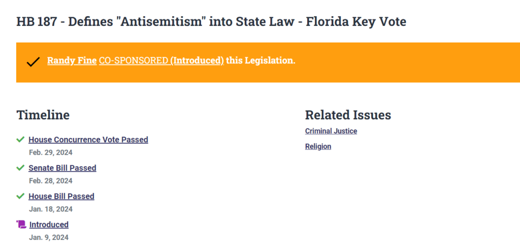 It is important to keep in mind when reading Fine’s email that recently sponsored the largest piece of anti free speech legislation in Florida history.