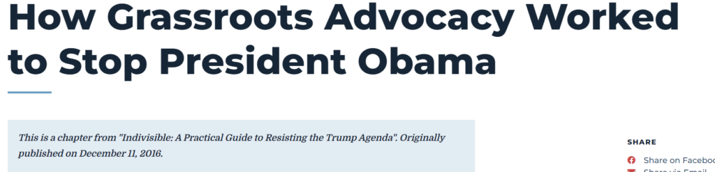 If you are unaware of Indivisible, it is a group of radical left wing activists that formed during Donald Trump’s presidency to stop MAGA. Per one of the few sections of the Indivisible website which remains public, they modeled their plan of action around the grassroots Tea Party which thwarted much of the Obama agenda.