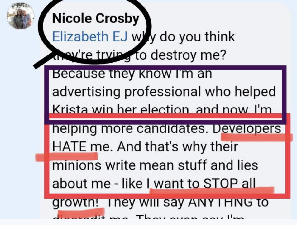 Seeing this pattern from Crosby was quite alarming. It appeared that she had used the exact same playbook over a decade ago. This led me to take a deeper look at the two candidates she was supporting and who might be supporting them.