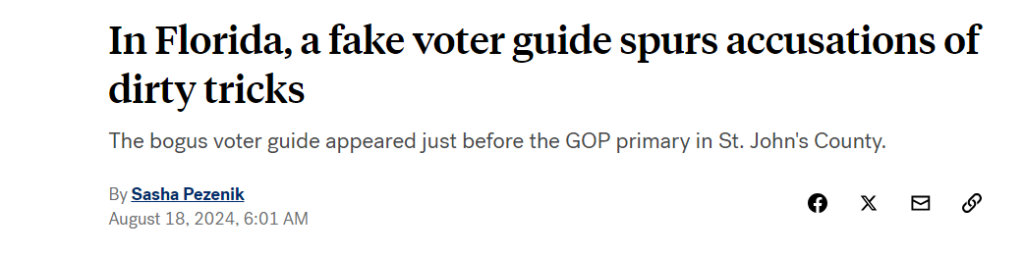 The biggest thing that Evan Power did was go after the FLORIDA REPUBLICAN ASSEMBLY Chapters. The also help developer candidates by not going after the MAGA PC voter guides that used local REC names and logos and the RPOF name and logo
