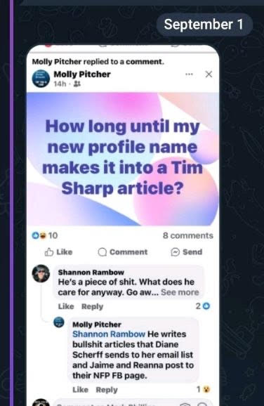 The first reply to Gaglianese’s new profile was from Flagler County Moms For Liberty Chair Shannon Rambow.